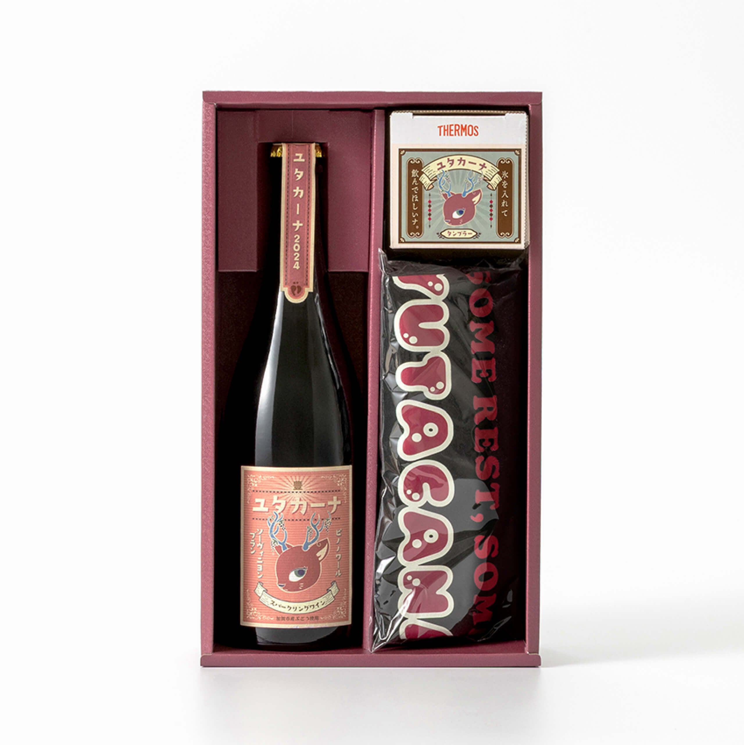 ロゼスパークリングワイン「ユタカーナ」と、ユタカーナオリジナルTシャツ、タンブラーがセットになった、まさにユタカーナ尽くしのギフトセットが誕生!